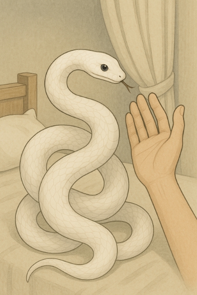 조금 의외일 수 있지만, 이런 꿈도 꽤 자주 등장해요. 흰 뱀이 얌전하게 있고 내가 만지는 상황이라면 이건 내가 이미 좋은 흐름을 받아들이고 있다는 의미에 가까워요.